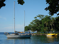 Then it was another hour or so of winching the bikes up out of the launch and onto the yacht deck (Which was made quite entertaining by the dynamic mix of personalities involved... Yacht captain being very emotional and with explosively expressive emotions, Launch captain being surly, impatient and rough with the bike cargo, and Greg and I with being protective and maybe a bit paranoid with our trusty steads! ... At the end of it all though, the bikes were safe, captains were paid, and the damage to our stuff was not too bad. And another hour of lashing things down so that its all secure for when we sail... We´ll see how well we've done that when we head for open water tomorrow.